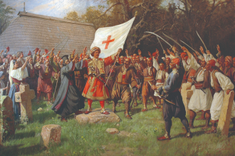 Pintura de Miloš Obrenović en la proclamación en Takovo. Tomado de muzejgm.org